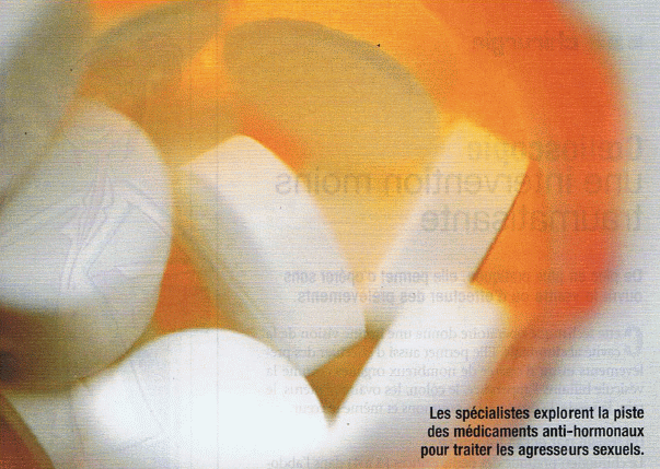 Sans remettre en cause la nécéssité de punir les criminels, les psychiatres s'intéressent de plus en plus à la prise en charge des pédophiles. Une prévention grâce à des médicaments est même envisagée.